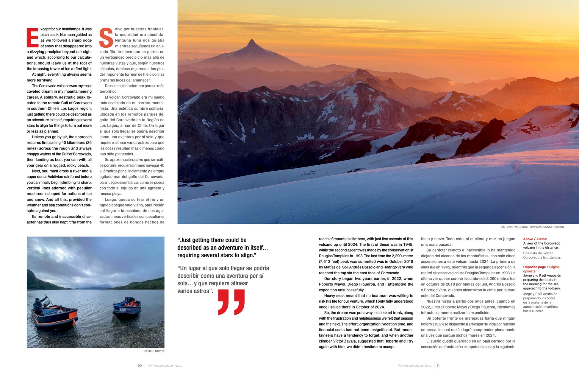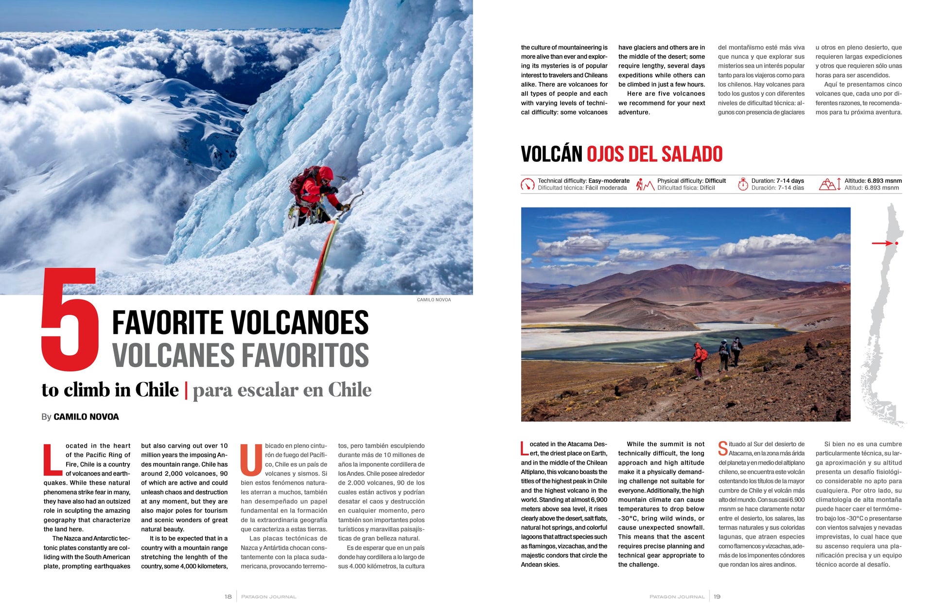 En esta edición, Camilo Novoa escribe sobre el ascenso al esquivo volcán Corcovado y detalla nuestros cinco volcanes favoritos para escalar en Chile, mientras que la escritora científica Debora Gutiérrez informa sobre la investigacion científica que se están llevando a cabo aquí para comprenderlos y monitorizarlos.